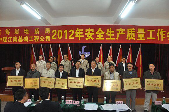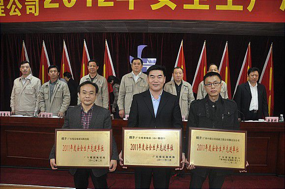 ?????? 2月22日,廣東局(中煤江南公司)在廣州嘉禾召開2012年度安委會第一次會議和安全質(zhì)量工作會議。局長穆勇主持安委會第一次會議,并在安全質(zhì)量工作會議上講話。黨委書記楊文剛主持安全質(zhì)量工作會議,副局長鄭梅深作安全質(zhì)量工作報告。會上,還隆重表彰了2011年度3個安全生產(chǎn)單位、9個安全生產(chǎn)先進項目部、9個質(zhì)量管理先進項目部、27名安全生產(chǎn)先進個人和9名設(shè)備管理先進個人。201隊、佛山分公司、開發(fā)區(qū)分公司東莞萬達廣場項目部負責人分別在會上進行安全質(zhì)量工作經(jīng)驗交流。會后,會議代表到佛山分公司嶺南新天地項目部召開工程項目 “五個模式”管理現(xiàn)場推廣會。局領(lǐng)導、局(公司)安委會成員、二級單位行政主要領(lǐng)導、主管安全質(zhì)量工作分管領(lǐng)導、安全質(zhì)量管理部門負責人和受表彰的先進代表共90余人出席會議。