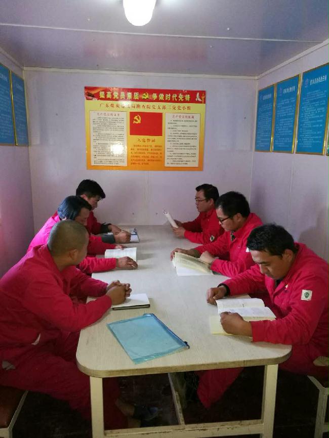 近日,勘查院山西三交項目部黨小組開展學(xué)習(xí)教育,把院黨支部兩學(xué)一做學(xué)習(xí)教育工作落到實處,增強一個黨員一面旗的使命感和責(zé)任感,更好發(fā)揮黨員的先鋒模范作用??辈樵狐h支部認(rèn)真貫徹落實局黨委的工作部署,根據(jù)工作需要,在各項目部設(shè)置黨小組,建立了黨小組活動室,配備了相關(guān)學(xué)習(xí)資料,每月安排學(xué)習(xí)教育。三交項目部黨員帶頭,克服了開工前人手不足按時做好開工籌備,雨天施工道路不通情況下采用人背肩扛運輸油料等諸多困難,項目總進(jìn)度接近一半。在自然環(huán)境較差和生產(chǎn)任務(wù)繁重的條件下,學(xué)習(xí)教育活動不斷助推項目穩(wěn)步實施,帶來新的工作動力和成效。各項目部黨小組積極行動,包括臨聘的井隊人員中的黨員也加入了學(xué)習(xí)教育??辈樵狐h建活動正在