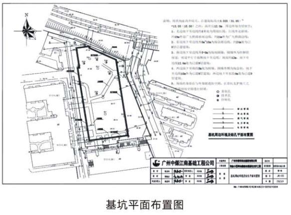 該項(xiàng)目位于佛山市高明區(qū)荷城街道凌云港以北,泰和路以東。地質(zhì)條件上部為淤泥、淤泥質(zhì)砂,下部溶洞高唐發(fā)育,基坑開挖深度約14米,周長約500米,為高明地區(qū)最深最復(fù)雜基坑。設(shè)計(jì)采用1000mm厚鋼筋混凝土連續(xù)墻+兩道鋼筋砼內(nèi)支撐梁作為支護(hù)體系,地下連續(xù)墻兼做地下室結(jié)構(gòu)側(cè)壁。