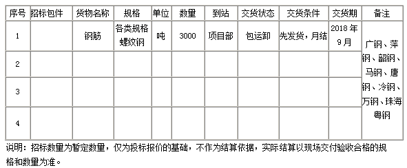 二、招標(biāo)內(nèi)容(主要采購材料明細(xì),報價清單自擬)說明:招標(biāo)數(shù)量為暫定數(shù)量,僅為投標(biāo)報價的基礎(chǔ),不作為結(jié)算依據(jù),實際結(jié)算以現(xiàn)場交付驗收合格的規(guī)格和數(shù)量為準(zhǔn)。招標(biāo)活動相關(guān)事項在中煤江南(廣東局)網(wǎng)站http://www.gzzmjnjc.com上公開發(fā)布。紀(jì)檢監(jiān)察部0000