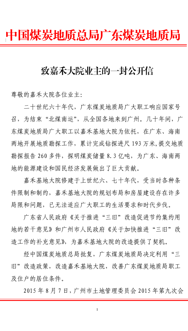 根據(jù)嘉禾基地大院改造需要,詳見《廣州市土地開發(fā)中心關(guān)于加快推進(jìn)廣東煤炭地質(zhì)局嘉禾基地大院地塊收儲(chǔ)及拆遷安置工作的函》穗土開函[2016]667號(hào))。拒絕搬遷的,中心保留向租戶索賠搬遷、拆除相關(guān)費(fèi)用的權(quán)利,租戶財(cái)產(chǎn)損失由其自行承擔(dān)。租戶在場內(nèi)所建的固定建筑物按租賃協(xié)議規(guī)定全部無償留給中心,不準(zhǔn)人為破壞。工程管理科:嚴(yán)惠添,電話13610229355,治安隊(duì):周麥衛(wèi),電話13726764028。廣東煤炭地質(zhì)局機(jī)關(guān)事務(wù)管理中心