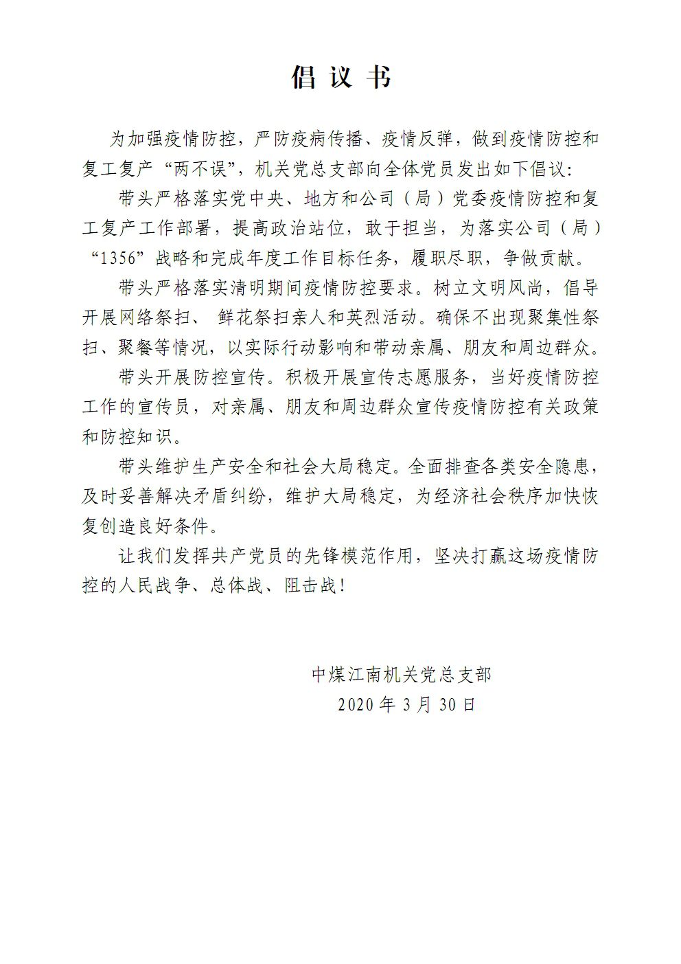 黨總支部發(fā)出了加強清明期間疫情防控,文明祭祀,嚴防疫情傳播反彈的倡議。(吳新文)