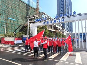 佛山分公司中集集團(tuán)總部大樓項(xiàng)目舉行黨員突擊隊(duì)、青年突擊隊(duì)授旗儀式
