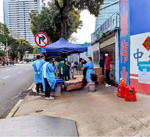 面對(duì)當(dāng)前疫情防控的嚴(yán)峻形勢(shì),為減輕社區(qū)核酸檢測(cè)工作的壓力,3月31日,珠海分公司萬(wàn)菱項(xiàng)目工作人員主動(dòng)請(qǐng)纓,全力配合社區(qū)核酸檢測(cè)工作人員在萬(wàn)菱環(huán)球中心項(xiàng)目附近開(kāi)展核酸檢測(cè)工作。