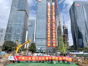 11月18日上午,廣州琶洲名創(chuàng)優(yōu)品國際總部項(xiàng)目部熱鬧非凡,由履帶吊車吊起長達(dá)27米的最后一幅槽的地連墻網(wǎng)片上的“名創(chuàng)優(yōu)品國際總部項(xiàng)目連續(xù)墻順利合攏”標(biāo)語格外醒目,這是佛山分公司在舉行名創(chuàng)優(yōu)品國際總部項(xiàng)目地下連續(xù)墻合攏儀式。